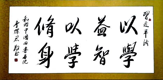 在習(xí)近平主席7月3日訪韓前夕,韓國總統(tǒng)特使金武星先生接受韓中學(xué)術(shù)文化交流協(xié)會(huì)會(huì)長申京淑轉(zhuǎn)贈(zèng)李耀君書法習(xí)近平語“養(yǎng)浩然正,氣塑高尚人格”。和諧中國網(wǎng)總編、《弟子規(guī)》現(xiàn)代修訂者、和諧書院院長李耀君系列書法習(xí)近平語風(fēng)靡韓國政界。中華傳統(tǒng)文化廣泛促進(jìn)中韓兩國人文交流。