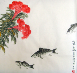 1985年寫意畫《荷花圖》被選中在中國(guó)人民解放軍總政禮堂參加畫展。